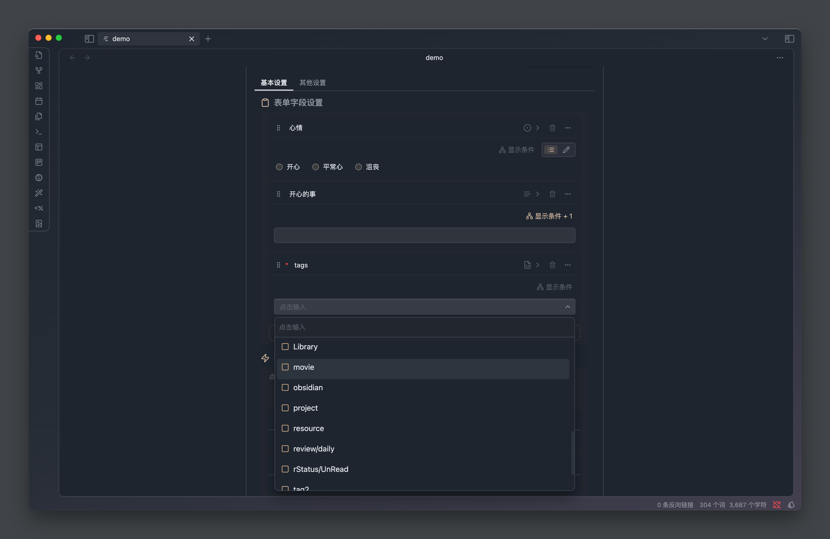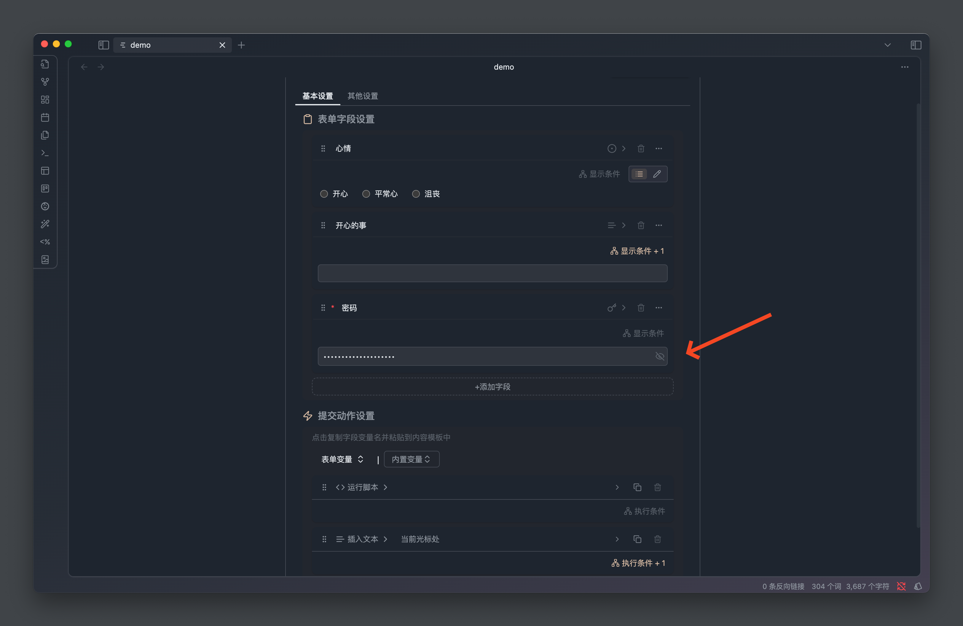 比如我们有一个心情录入表单,我们可以配置当 心情